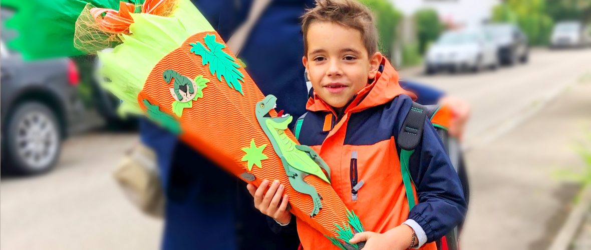 Eine superschöne Schultüte lässt sich heute zusammen mit Kind einfach und schnell basteln. Dazu benötigt ihr nur eines der fertigen Schultüten-Bastelsets, die es im Internet z.B. bei www.trendcreativ.de oder www.buttinette.com, zu bestellen gibt. Einfach ein schönes Motiv aussuchen (die Auswahl ist wirklich groß), bestellen und mit oder ohne Kind die Schultüte zusammenkleben. Dafür benötigt ihr am besten einen Heißkleber.